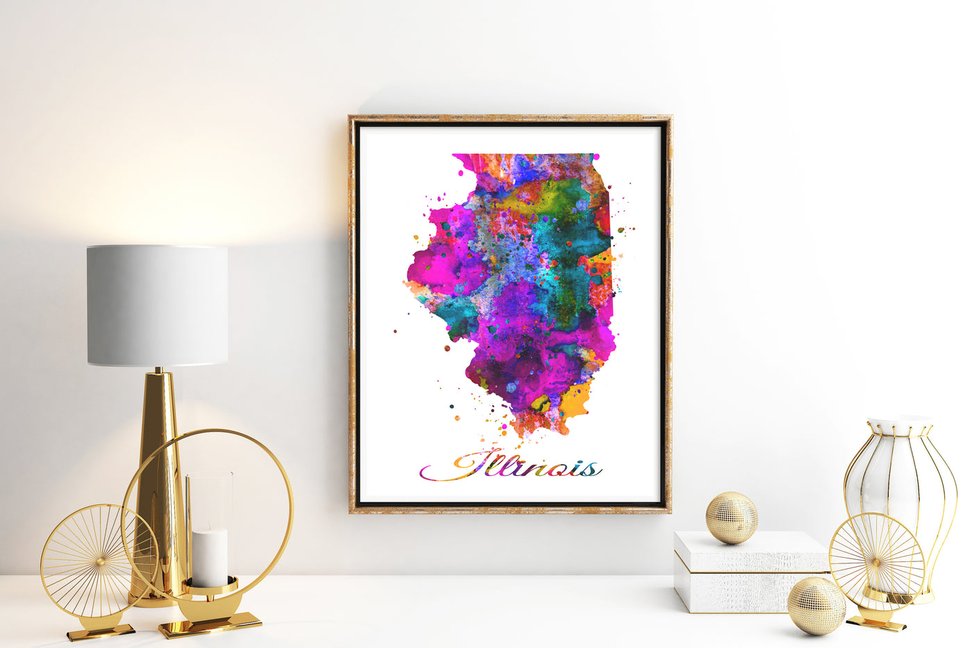 - Illinois Map Watercolor Art Print - Unframed